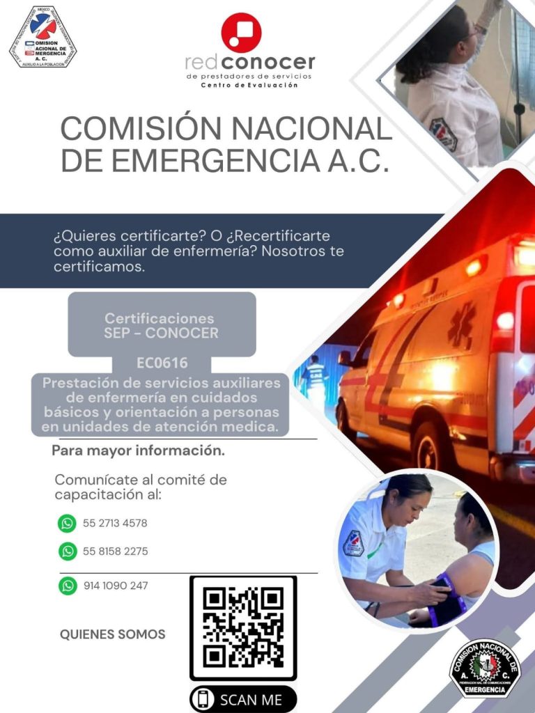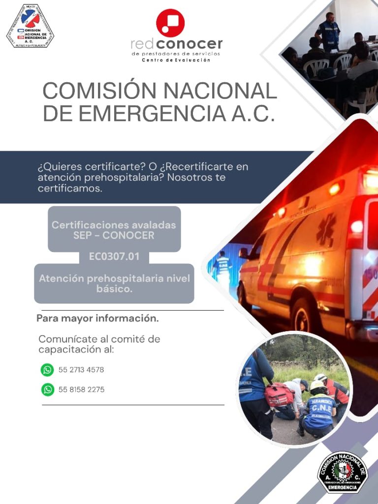 Comisión Nacional de Emergencia A.C. comprometidos con brindar un servicio de calidad, mantiene continuamente programas de capacitación para este fin.